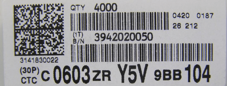 如上圖所示臺灣國巨貼片電容標簽(YAGEO第3廠,簡稱Y3廠)