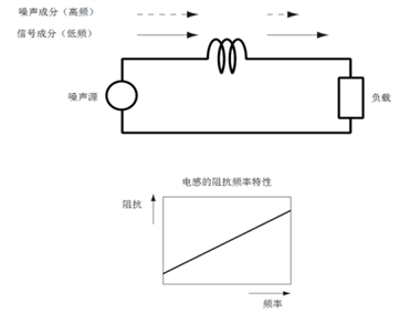 因此,如果將電感串聯(lián)插入噪聲通道,頻率較低的信號(hào)成分將容易通過,頻率較高的噪聲成分將不易通過。