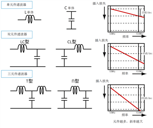 上述兩種元件是最簡(jiǎn)單的低通濾波器,可以通過相互的組合,構(gòu)成高性能的低通濾波器。